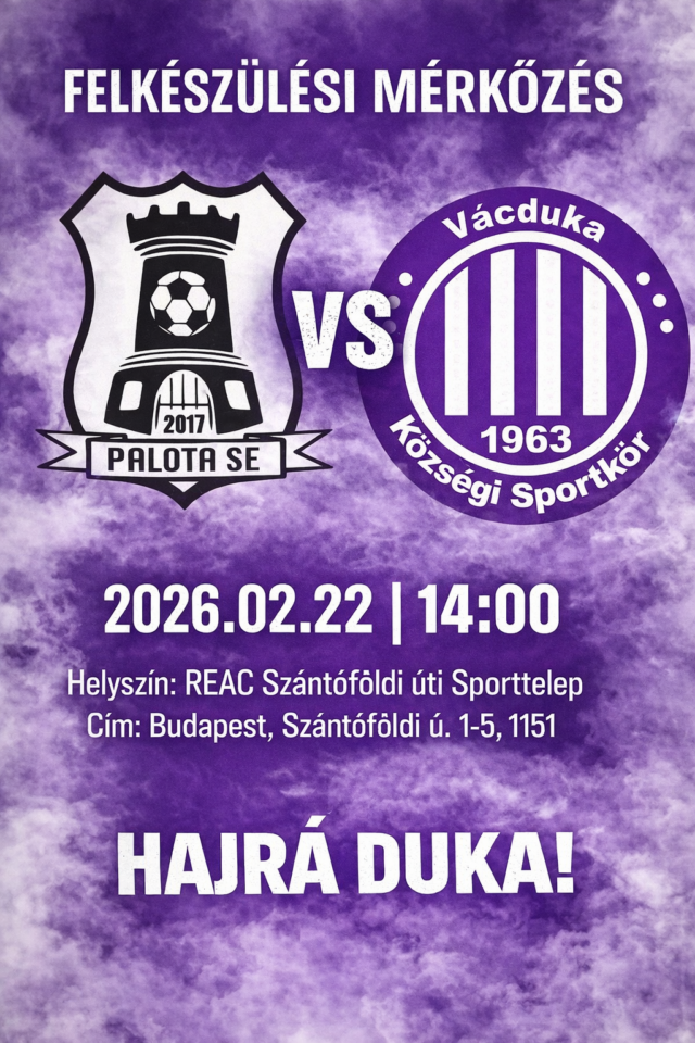 A bajnoki rajt előtti utolsó felkészülési mérkőzéséhez érkezik a Vácduka KSK, amely vasárnap 14:00 órakor lép pályára a Palota SE ellen.